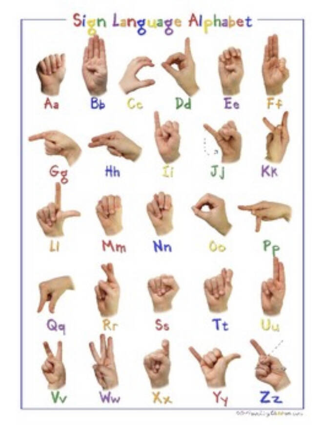 Check out the American Sign Language alphabet chart and common words link.